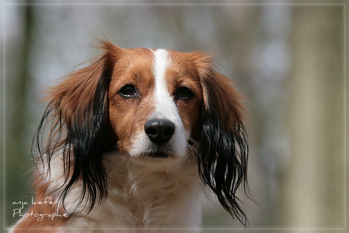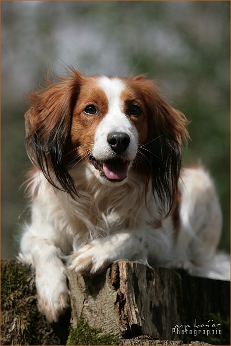 Mit dem Abschied von Dibbles ist eine Ära zu Ende gegangen... Sie war unser erstes Kooikerhondje, das im Alter von 8 Wochen nach 11-monatiger Wartezeit aus den Niederlanden zu uns kam. Nach kürzester Zeit hatte sie unsere Herzen im Sturm erobert, aber sie begeisterte nicht nur uns, sondern auch viele andere Menschen. So mußten wir nicht lange dazu überredet werden, Dibbles zur Zucht einzusetzen. Wir waren sehr gern bereit auch andere Menschen mit solch einem Hund glücklich zu machen. Sie war so unglaublich lieb und fürsorglich, vor allem Kinder und Welpen liebte sie sehr. Und wenn es Mensch oder Tier schlecht ging, kuschelte sie sich an und versuchte zu trösten. So bescheiden und unauffällig sie auch war, lebte sie ihr Leben aber bei jeder Gelegenheit nach ihren eigenen Vorstellungen, bedingungsloser Gehorsam war ganz und gar nicht ihr Ding. Kurz gesagt, sie war eine großartige Persönlichkeit... Bis auf die letzten Tage ihres langen Lebens war sie ausgesprochen fit und munter, konnte ihr Leben noch fröhlich genießen. Dann setzten Schlaganfälle dem ein Ende... Bei aller Trauer sind wir stolz und glücklich, dass etwas von ihr in ihren vielen Kindern, Enkeln, Urenkeln etc. weiterlebt, sie also indirekt weiterhin Menschen glücklich macht...